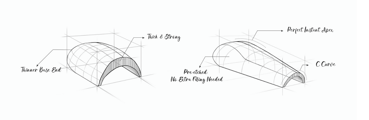 X-Forms™ are our signature pre-sculpted full-cover nail tips, engineered with a perfect apex for strength, structure, and effortless application. Designed to work seamlessly with both soft gel and acrylic systems, these forms eliminate the time-consuming step of building an apex from scratch — giving techs consistent results and faster sets every time.